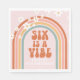 Seis é um guardanapo de festa de aniversário Vibe, inspirado retroativamente, com arco-íris, margaridas e fontes e cores de som.