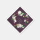 Guirlanda floral elegante, guardanapos de papel personalizados. A guirlanda apresenta flores de ameixa roxas e brancas de marfim com folhagens verdes ricas e douradas. O modelo fornece dois espaços para nomes e data do evento. A cor do fundo, mostrada em roxo de ameixa, pode ser personalizada.