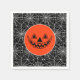 O guardanapo de papel do Dia das Bruxas é mostrado com uma teia de aranha festiva e impressão de rosto de abóbora. Personalize este item ou comprar como está. Vendida no pacote Imagem licenciada