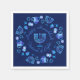 Símbolo Hanukkiah. Feliz Festa de Hanukkah Feriado Judeu Menorah Azul. Decoração de Feriado Judeu Chanukkah com o símbolo decorativo tradicional de Chanuka - Marinho Blue color hanukkiah menorah, candelabro com velas, estrela de David e ilustração azul neon brilhante. Festa de Chanucá das Luzes Decoração do Evento. Jerusalém, Israel. Artesanatos e suprimentos de terceiros > Fornecimentos de terceiros > Tableware > Papel e Partido Napkins Judaica Modern Design com modelo de texto. Personalize-os adicionando nome ou texto de desejos. Design de dois lados.