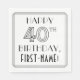 Este na moda da era 1920 dos anos 30 inspirou a arte deco a olhar o papel de aniversário napkin design tem a mensagem "HAPPY ANIVERSÁRIO DE 40 ANOS," junto com um nome de destinatário personalizado. O número "40TH" tem um aspecto geométrico de rico, e há também uma fronteira alinhada em torno da mensagem de saudação de aniversário. Os guardanapos de papel com tema de aniversário como este podem ser divertidos de usar numa festa de aniversário que está sendo realizada para alguém que está celebrando seu quadragésimo aniversário. [~Z0000644]