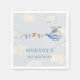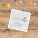 Celebre o primeiro aniversário do seu filho com este bonitinho guardanapo de papel com viagem de ar, com um lobo voando num helicóptero com guarnições coloridas e nuvens de aquarela macia. Personalize o texto para se adequar aos detalhes do seu partido.