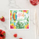 Adicione um pouco de diversão tropical à sua celebração com esses guardanapos para coquetel apresentando um papagaio aquarelado, flores de hibisco, folhas de palmeira e uma saudação colorida Aloha em tons de verão rosa, laranja, amarelo, verde e azul aqua. Perfeito para temas tiki, luau, praia, verão e selva. Arte por KL Stock.