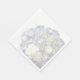 Hidrampas e rosas brancas, semitransparentes e azuis, em fundo branco, para o seu janto ou chá.