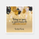 Design de guardanapo de papel personalizado moderno, com balões de ouro, brancos e negros, confete, luzes e brilhos em um fundo de ouro. O texto é totalmente personalizável.