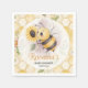 These honeycomb baby shower napkins feature a cute bee with a sunflower surrounded by floral details and bees. The warm and playful design makes them a perfect personalized table detail.