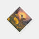 Estes guardanapos de papel apresentam um beija-flor pairando sobre papoilas amarelas no pôr do sol.