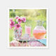 Limonada cor-de-rosa na mesa com uma fotografia cor-de-rosa de dentro de vaso.