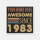 Um design de ano de nascimento com estilo de vintage legal com cores retrorativas e efeito aflitivo. Uma ideia de presente de aniversário de excelente ou de diversão na festa de aniversário. Personalize este design de aniversário personalizado adicionando seu próprio nome!