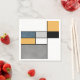 Arte abstrato moderna com retângulos coloridos (azul marinho, cinza, preto, amarelo, branco) no estilo Mondrian sobre fundo branco