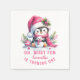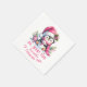 Crie guardanapos de papel feminina personalizados para a festa de aniversário da primeira menina no tema "Oh, que diversão". Estes guardanapos de cor rosa e branca apresentam um pinguim giro num chapéu e cachecol de Papai Noel, sentados com um boneco de neve cercado de verde e ornamentos de férias. O modelo torna fácil digitar o nome da aniversariante, que é projetado em uma fonte casual de script.