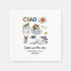 These chic Italian-inspired cocktail napkins bring effortless Amalfi Coast charm to your table. Featuring playful hand-drawn illustrations—sun, seaside village, wine glass, and lounging figure—paired with a bold “Ciao” headline, the design feels relaxed, romantic, and artfully modern. A perfect finishing touch for destination weddings, engagement parties, welcome dinners, or Italian-themed celebrations, these napkins add a splash of color and European flair while keeping the vibe casual-luxury and joyfully celebratory.