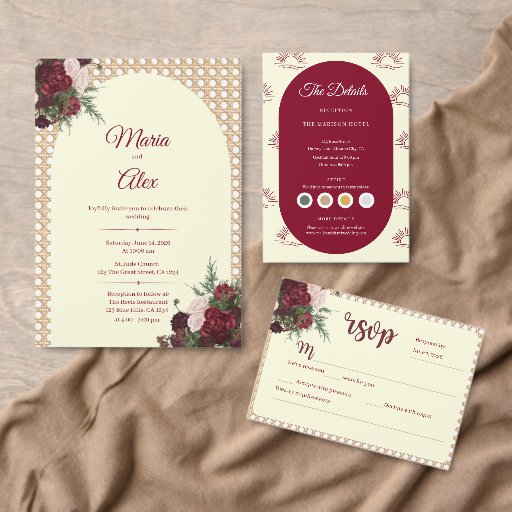 Burgundy Ivory Floral Rattan Wedding CollectionCriado por Shanielle Grace Lemorinas