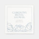 Perfeito para jantares de noiva em jardim na primavera ou verão, este design elegante de peônia para jantar de noiva apresenta uma borda com ilustrações de flores de peônia em azul poeira ao longo da parte inferior. Personalize esses guardanapos para jantar de noiva com o nome do seu evento, data e ano.