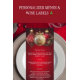 Um fundo vermelho, texto branco. Decorado com 3 borbulhas vermelhas e falsas de ouro e estrelas douradas. Texto: Feliz Natal. Personalize e adicione seu nome de família e ano.