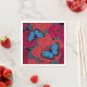 Padrão sem costura com borboleta azul-morfo desenhada à mão, hydrangea e peônias.
