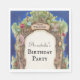 Estes guardanapos de fadas mágicos apresentam um tema encantado de fadas de floresta. Imaginamos uma imagem de um portal mágico de fadas ou de uma porta, construída a partir de árvores. O portal é acentuado com flores e poeira brilhante. O fundo apresenta um design do céu azul escuro místico. Um cartaz de madeira acima da porta diz: "Bem-vindos às fábricas."