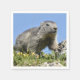 Jovem marmota alpina (Marmota marmota) sobre o fundo do céu azul, no departamento francês dos Alpes, Savoie, em La Plagne