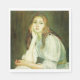 Este design apresenta uma pintura do Impressionista Francês Berthe Morisot (1841-1895). Mostra uma jovem com cabelo castanho longo. Ela está descansando a cabeça em uma de suas mãos enquanto olha com sabedoria para o espectador. Ela se perde no pensamento, talvez sonhando com coisas que lhe aconteceram ou com esperanças para o futuro. Ela está vestindo um vestido azul pastel. O trabalho artístico original foi pintado em 1894.