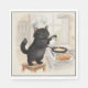 Black cat in chef's hat making pancake breakfast