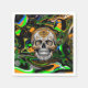 Crânio de açúcar preto, verde limão, laranja com abstrato de fundo de arte fluida.