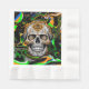 Crânio de açúcar preto, verde limão, laranja com abstrato de fundo de arte fluida.