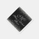 Um design elegante de guardanapo com uma espiral de brilho prateado sobre fundo preto puro. Esta é parte de uma coleção de casamento que pode ser totalmente personalizada.