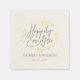 Doce design de guardanapos de papel de casamento que mostra as palavras felizes para sempre em um roteiro de cinza único circulado por simples folhas amarelas de riso com nomes e datas de casamento para você personalizar.