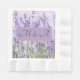 Guardanapos cozidos com lavanda macia e verde inspirados pela beleza das flores lavandas do campo com nomes personalizados para a sua celebração de casamento.