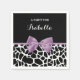 Fraldas de impressão de papel girafa branca e preto, com uma fita púrpura de lavanda giratória, amarrada em um arco feminino. Personalize este design de impressão animal bonito adicionando o nome da garota da festa. Imagem impressa plana, não arco real.
