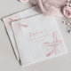 Celebre a noiva com guardanapos para chá de panela elegantes e sofisticados, apresentando laços rosa delicados e pérolas cintilantes. Este design moderno e glamoroso combina caligrafia sofisticada com um toque de charme feminino.