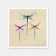 Bonito ilustração de cor d'água original de libélulas fofinhas em cores diferentes contra um fundo rústico.