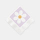 Retro inspirou primeiros guardanapos de aniversário com margaridas do estilo 70 e fontes e cores boho.