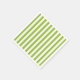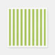 Guardanapo de papel de festa é mostrado no tamanho de coquetel branco com uma estampa de listras verdes de primavera e brancas.