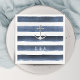 Listras aquáticas em azul escuro de marinho com design de âncora prateada, simples e chic, guardanapos de papel excelente para o casamento de praia, casamento do tema náutico, casamento de destino, festa de casamento de verão e decoração costeira. Veja todas as peças correspondentes na coleção abaixo.