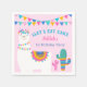 Os guardanapos da festa de papel "Vamos comer bolo" de um animal bonito apresentam uma lhama festiva, um balão de aniversário amarelo, bandeiras de bunda arco-íris e plantas do cacto do deserto. Personalize com o nome e a idade da criança. As cores negras incluem rosa, fúcsia, verde-lacre, turquesa, azul-real e amarelo-ouro.