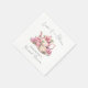 A sweet and elegant paper napkin designed for a “Love Is In Bloom” bridal tea or brunch. Centered on the napkin is a watercolor blush pink teapot with a matching teacup, surrounded by delicate pink flowers for a soft, charming look.