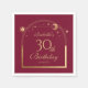 O Celestial Red Dourado Sun Moon Astronomy aniversário de 30 anos Paper Napkins apresenta um elegante sol dourado, lua e estrelas com um quadro de ouro sobre um fundo cor-de-rosa profundo. Dentro é a sua informação de aniversário de trinta anos. Personalize editando o texto nas caixas de texto. Projetado para você pelo Evco Studio www.zazzle.com/store/evcostudio