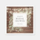 Com belas luzes de corda e delicadas folhas de folhagem em aquarela sobre um fundo de madeira rústica, esses guardanapos de papel botânicos elegantes podem ser personalizados com detalhes do evento especial. Criado por Thisisnotme©