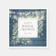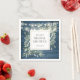 Com luzes de corda bonitas e folhas verdes de aquarela delicadas em um fundo de madeira azul rústica, esses guardanapos de papel botânicos chiques podem ser personalizados com detalhes do evento especial. Concebido por Thisisnotme