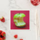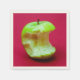 Foto de uma grande maçã verde contra fundo vermelho. A mordida grande foi tirada da maçã.