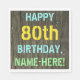 Este design de guardanapo de festa de aniversário divertido apresenta uma mensagem como "FELIZ 80 NAVEGADO, NOME AQUI!", onde o nome pode ser personalizado. O fundo apresenta um padrão de aparência rústico, castanho e falso em grãos de madeira. O texto de mensagem personalizável apresenta cores como azul, amarelo e verde, e tem uma aparência inspirada pela de letras pintadas e estêncilhadas. Napkins como estes poderia talvez ser usado numa festa de aniversário para alguém que comemora seu oitavo aniversário. [~Z0000292]
