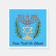 Esta imagem foi adaptada de um antigo azulejo judeu persa e apresenta uma menorah com um Magen David (Estrela de David) enquadrado por ramos de oliveira. As imperfeições da imagem original pintada à mão foram preservadas. Esta imagem também está disponível nos convites Bar/Bat mitzvah, nas placas RSVP e Obrigado e em muitos outros itens.