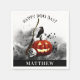 Estes guardanapos de papel do Halloween são perfeitos para uma festa de aniversário do Halloween. Estes guardanapos de festa para o aniversário do Halloween apresentam um fundo de tinta preta com um jack de fogo, o'lanterna, crânio humano, corvo negro e uma vassoura de bruxas. Personalize com o nome de sua escolha.