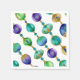 String of whimsical mardi gras beads in green, gold, blue, purple and aquamarine on cocktail napkins