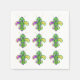 O guardanapo Mardi Gras, com lenha e flúor de lis em roxo vibrante, verde e ouro.