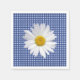 Margarida branca de verão num fundo branco e azul de gingham. O plano de fundo pode ser alterado.