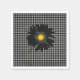 Margarida negra com centro amarelo brilhante sobre fundo de gingham preto e branco.