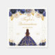 Este elegante e glamouroso guardanapo de Quinceañera apresenta uma bela princesa com cabelo escuro em um vestido de tiara e marinho azul. O texto combina o script manuscrito e as fontes sans serif modernas para um aspecto elegante e sofisticado. Os arranjos florais e o confete de ouro criam a mistura perfeita de rústicos e quicos. Gráficos por www.etsy.com/uk/shop/SunflowerDayLove