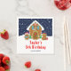 Este guardanapo bonitinho e festivo apresenta uma casa de pão de gengibre fofo decorada com doce vermelho e verde. Além disso, são adoráveis gengibres com presentes, vestidos com chapéus de Papai Noel e cachecol. Ao fundo está um céu azul marinho de inverno com flocos de neve em queda elegante. O texto combina fontes decorativas e sans serif para um aspecto na moda e moderno. Isto é perfeito para uma festa de decoração da casa de pão de Natal.